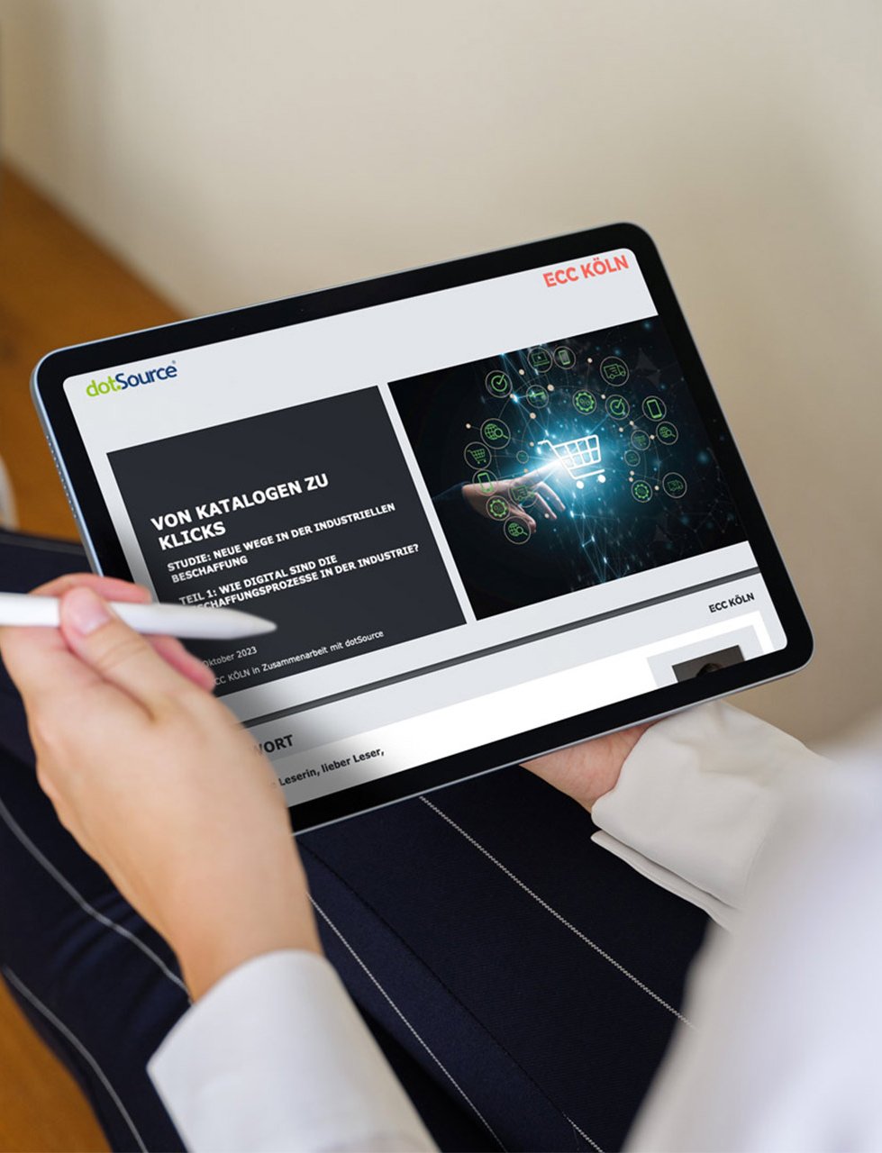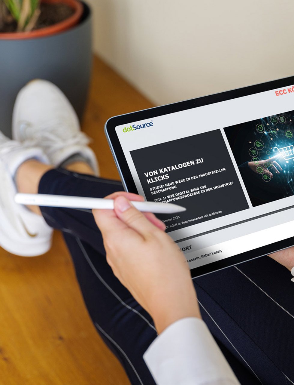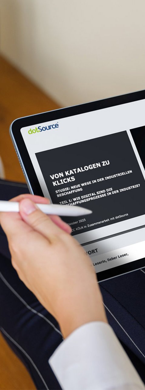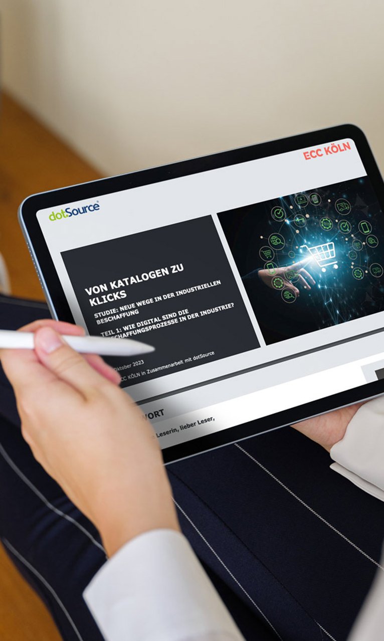 Bei der Beantwortung dieser Fragen können Studien helfen, die die Digitalisierungs- und Vertriebsprozesse von Unternehmen genauer unter die Lupe nehmen. dotSource arbeitet seit einigen Jahren mit dem Institut für Handelsforschung (ifh) Köln und seiner Tochterfirma ECC Köln zusammen und veröffentlicht 2023 eine Studie mit spannenden Erkenntissen rund um die Digitalisierungsreife in der Industrie. Im Fokus steht hierbei die komplette Customer-Journey — von der Produktrecherche über die Qualitätskontrolle und Warenlogistik bis hin zu Reklamationen und Kundenservices.