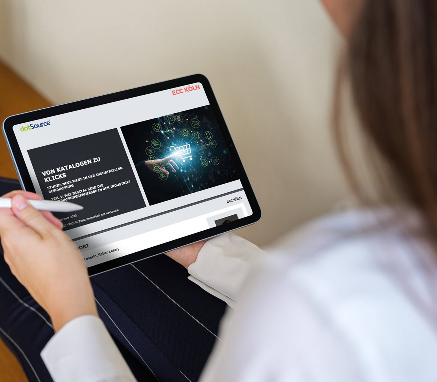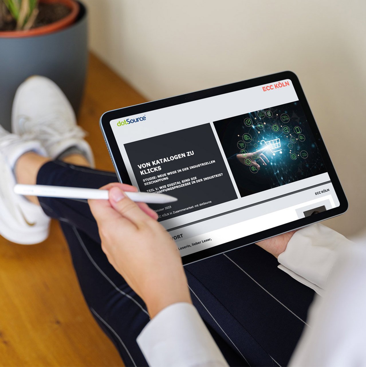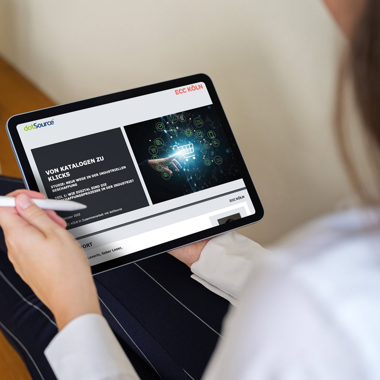 Bei der Beantwortung dieser Fragen können Studien helfen, die die Digitalisierungs- und Vertriebsprozesse von Unternehmen genauer unter die Lupe nehmen. dotSource arbeitet seit einigen Jahren mit dem Institut für Handelsforschung (ifh) Köln und seiner Tochterfirma ECC Köln zusammen und veröffentlicht 2023 eine Studie mit spannenden Erkenntissen rund um die Digitalisierungsreife in der Industrie. Im Fokus steht hierbei die komplette Customer-Journey — von der Produktrecherche über die Qualitätskontrolle und Warenlogistik bis hin zu Reklamationen und Kundenservices.