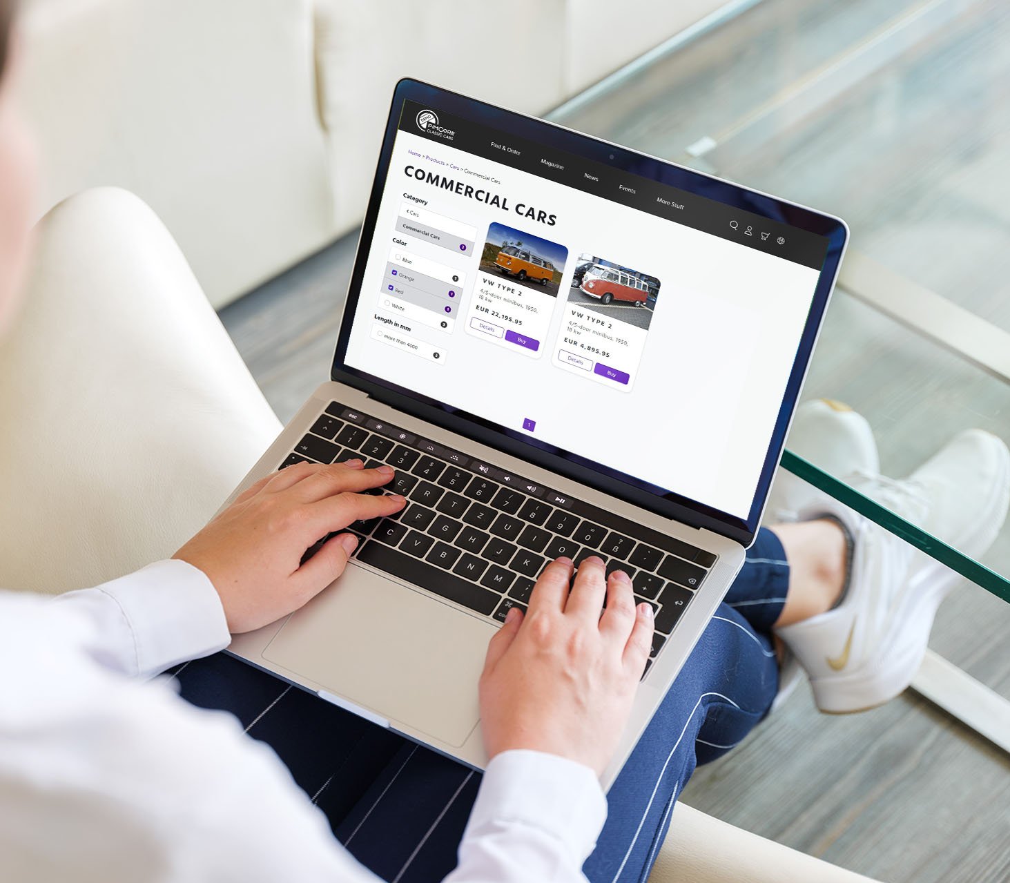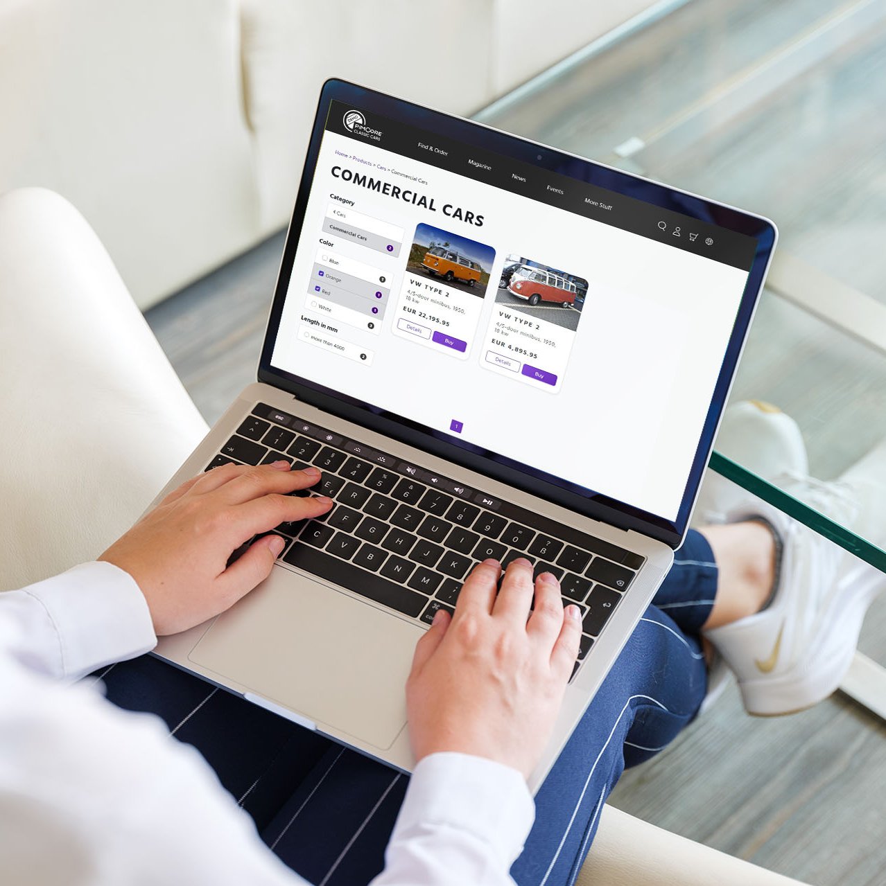 - »Wie viele rote Herrensneaker in Größe 42 sind im Sortiment?«